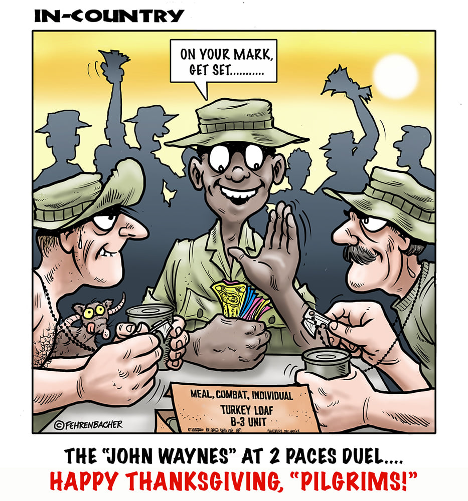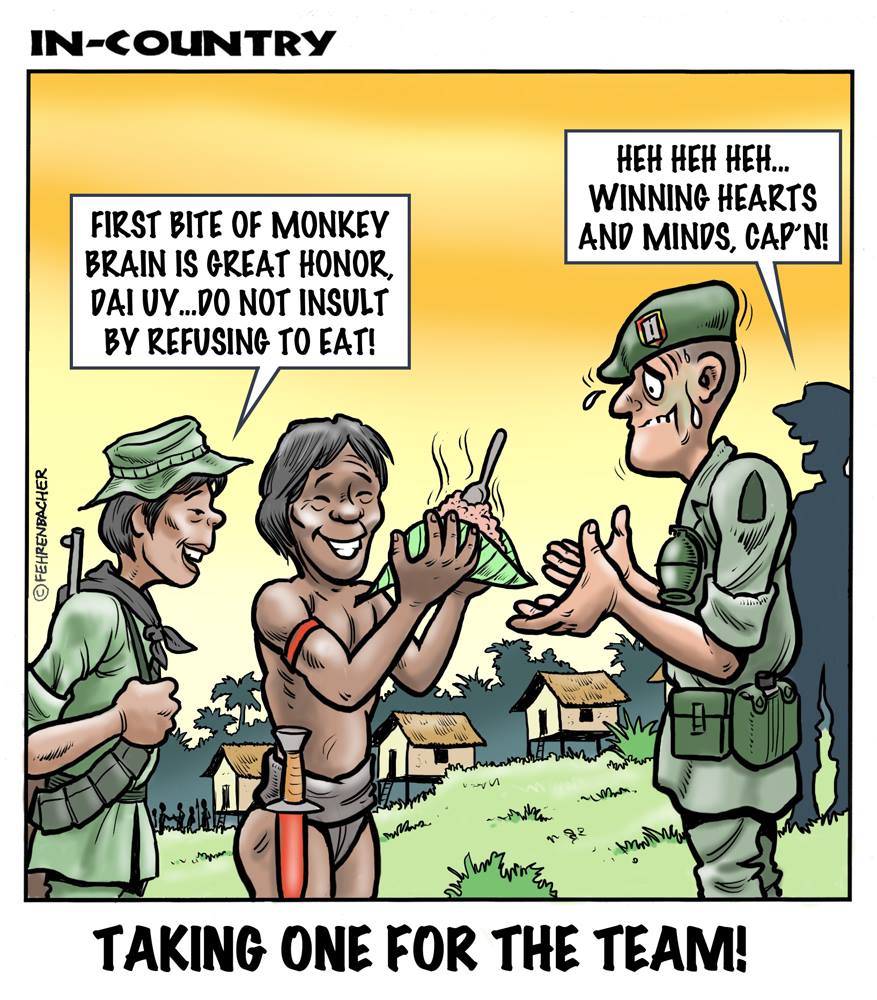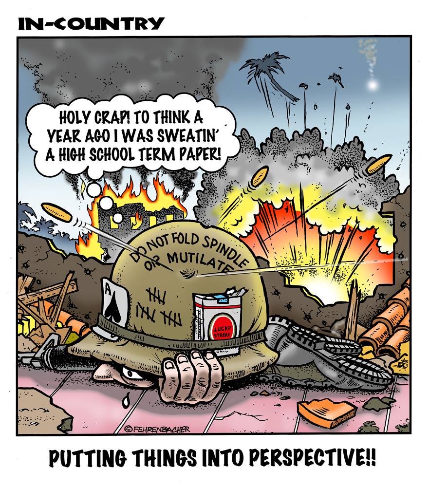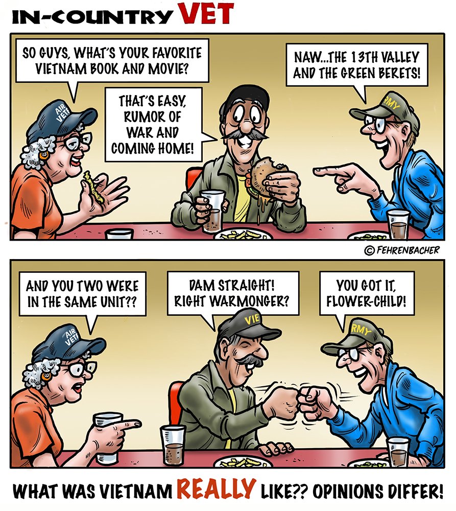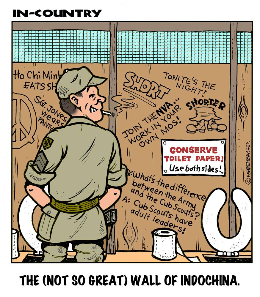 Phil enlisted in the Army in 1965 where you served for years in Vietnam. He became a graphic designer and has worked for the state of Oregon for 26 years. He retired in 2003 and started the Cartoon "In-Country". The cartoons reflect his experiences during his tour of duty in South Vietnam.