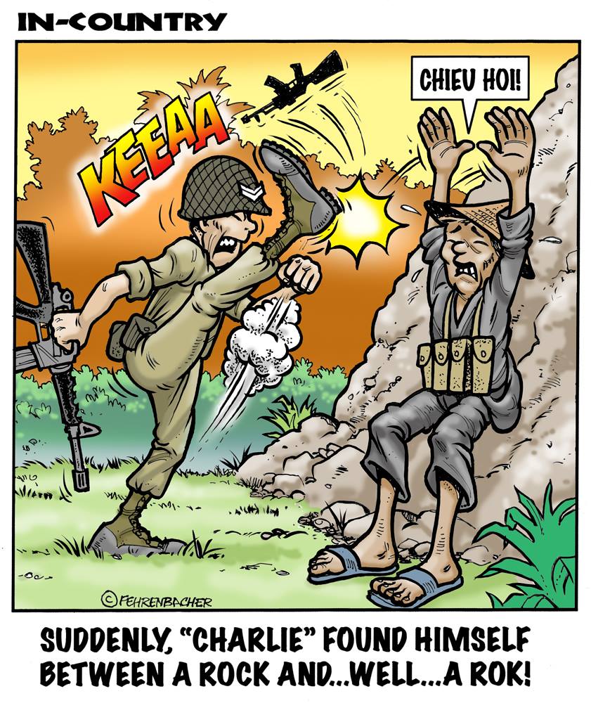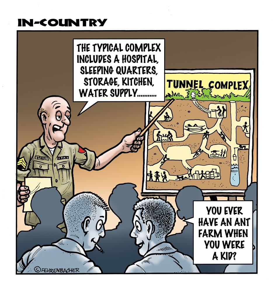 Phil enlisted in the Army in 1965 where you served for years in Vietnam. He became a graphic designer and has worked for the state of Oregon for 26 years. He retired in 2003 and started the Cartoon "In-Country". The cartoons reflect his experiences during his tour of duty in South Vietnam.